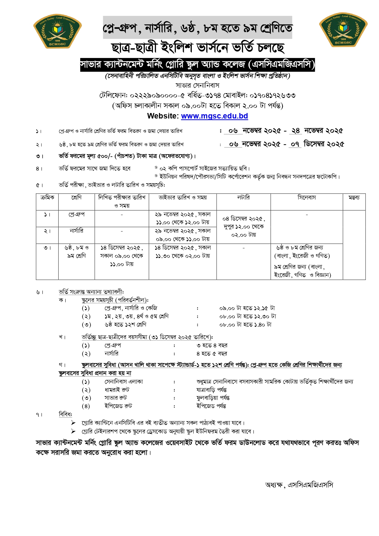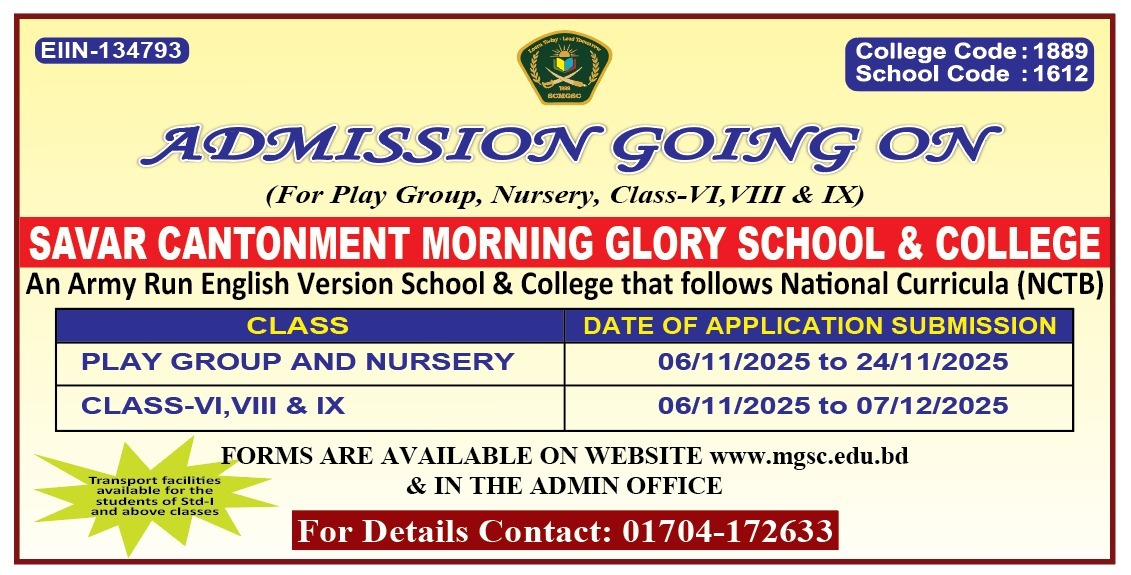 ২০২৬ শিক্ষাবর্ষে, বাংলা ভার্সনে ভর্তি আবেদনের শেষ তারিখ ১৫ অক্টোবর ২০২৫ এবং ভর্তি পরীক্ষা ১৮ অক্টোবর ২০২৫; সকাল ৯ ঘটিকা । এখন থেকে শুধুমাত্র tap অ্যাপ, Internet Payment Gateway অথবা *733# ডায়াল করে টিউশন ফি দেয়া যাবে, মাসের সংখ্যা 1 এর পরিবর্তে মাসের কোড যেমন May 2025 এর ক্ষেত্রে 052025 দিতে হবে।